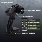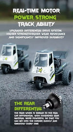 Equipped with a 2WD drive system and high-speed brushed motor, it reaches speeds of up to 23 km/h, making it ideal for cruising around and performing stunts on smooth terrains. The tricycle also includes a fun spray function, adding a touch of realism and excitement to your racing experience. Its 2.4GHz remote control system ensures that you can race multiple vehicles without interference, making it perfect for RC enthusiasts.