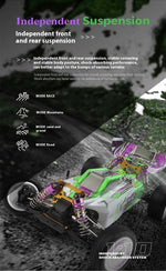 Experience the thrill of high-speed RC racing with the 1/10 Scale Brushless RC Car. Designed for speed enthusiasts and off-road adventurers, this RC monster delivers up to 60 km/h of raw power, backed by a precision-engineered brushless motor for maximum efficiency. The full simulation design replicates the real driving feel, from rapid acceleration to smooth cornering, while its independent suspension and hydraulic shocks make conquering rugged terrains effortless. Whether on sand, grass, snow, or mountain trails, this 4WD beast is built to perform.