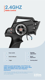 2.4GHz Remote Control – Anti-jamming radio system allows multiple cars to race on the same track with a control distance of up to 100 meters.