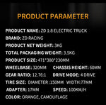 ZD Racing MT8 1/8 RC Car Off-Road 4WD High Speed Racing Remote Control Electric Monster Truck