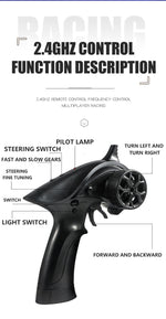 - Functions: Forward, reverse, left/right steering, high-speed racing